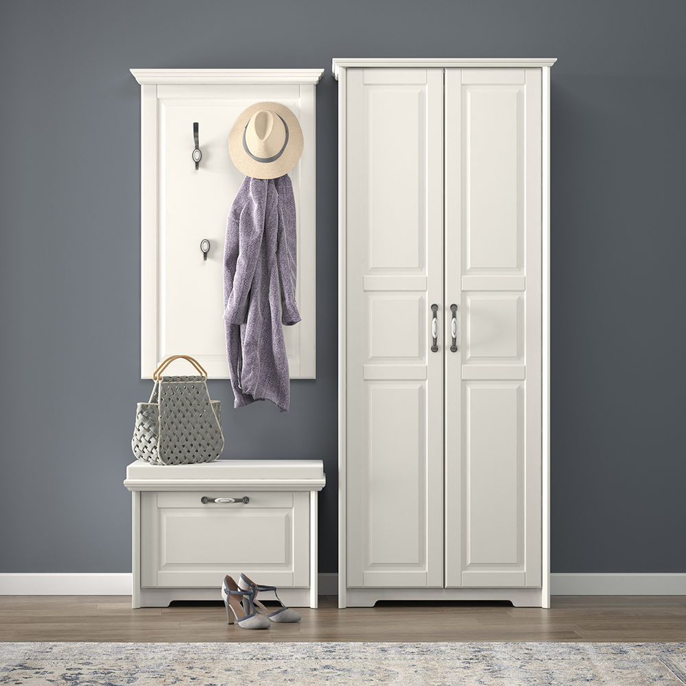 Cipelarnik za predsoblje iz kolekcije EVERGREEN, sa dva krila za odlaganje sezonske obuće i jednom fiokom za stvari koje koristite svakodnevno.