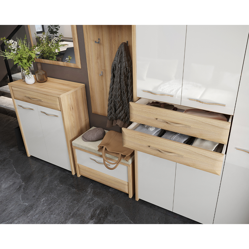 Cipelarnik za predsoblje iz kolekcije GALA sa dva krila i fiokom modernog dizajna.