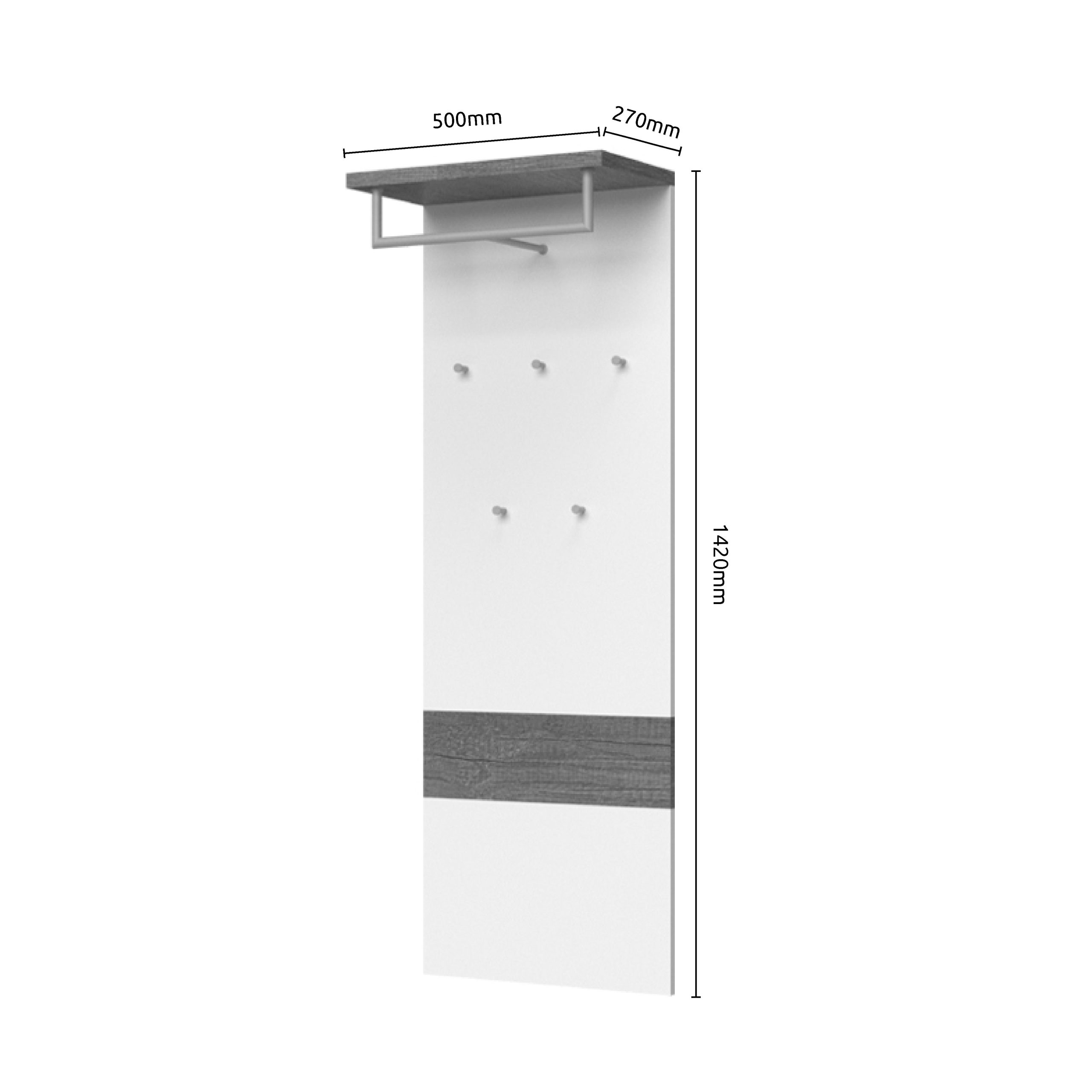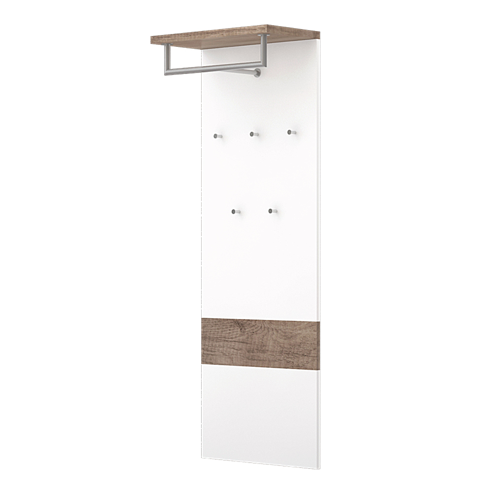 Čiviluk za predsoblje iz kolekcije AZUR sa pet kačilica za garderobu, jednom dekorativnom garderobnom šipkom i policom.