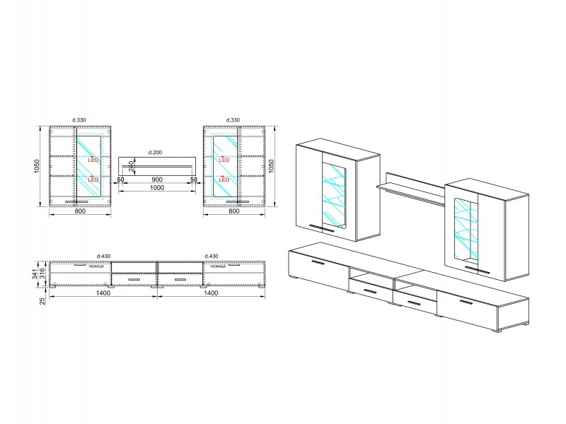 Ova TV polica je savršen izbor za svakog ko traži moderan nameštaj sa funkcionalnim karakteristikama. Ova sekcija dolazi sa LED osvetljenjem u plavoj boji, koje unosi dinamiku i savremeni izgled u prostor, dok mekano zatvaranje vrata omogućava tiši rad i dugotrajan učinak. Sa dimenzijama 2800 mm x 435 mm x 2100 mm, sekcija je idealna za prostrane dnevne boravke i nudi dovoljno prostora za TV i dodatne uređaje.