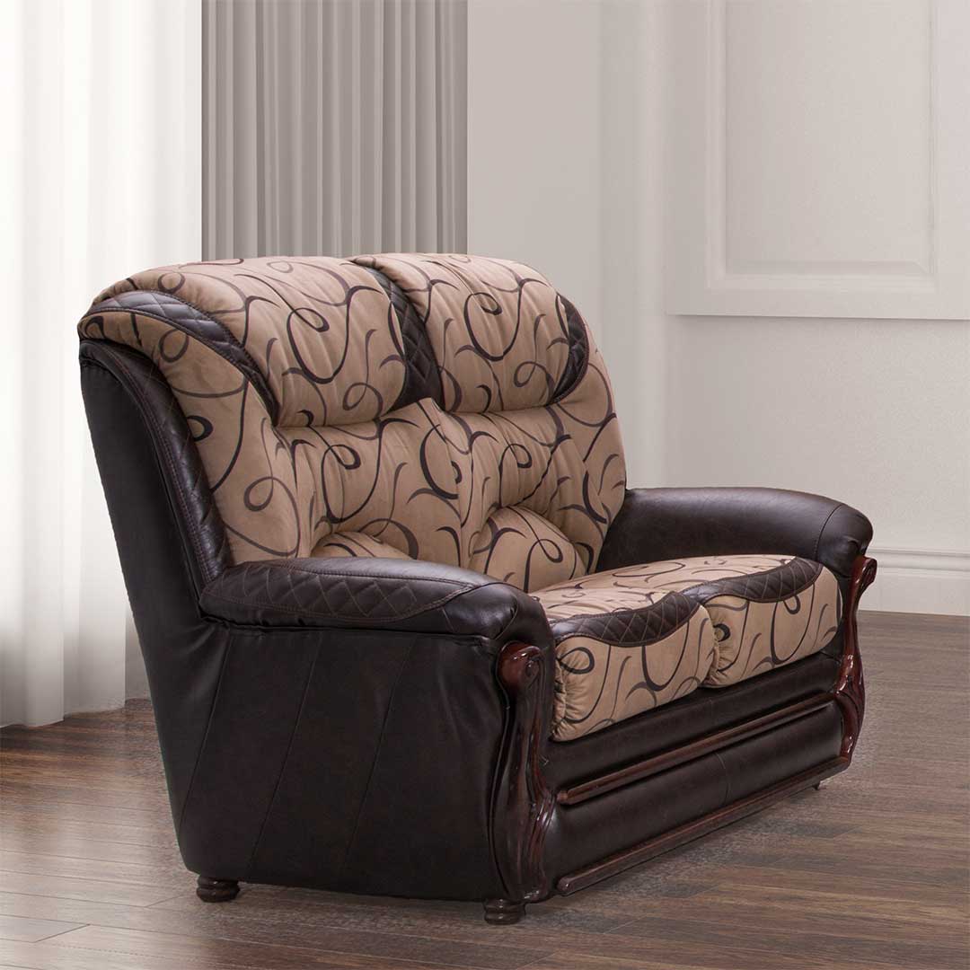 Klasican model dvoseda , sa izraženim aplikacijama od drveta , pogodan za manje prostore. Sedišta dvoseda su od sunđera gustine 28kg/m3 , dok je konstrukcija od drveta . Izaberite omiljenu boju kože iz ponuđene palete boja i ulepšajte Vašu dnevnu sobu.
