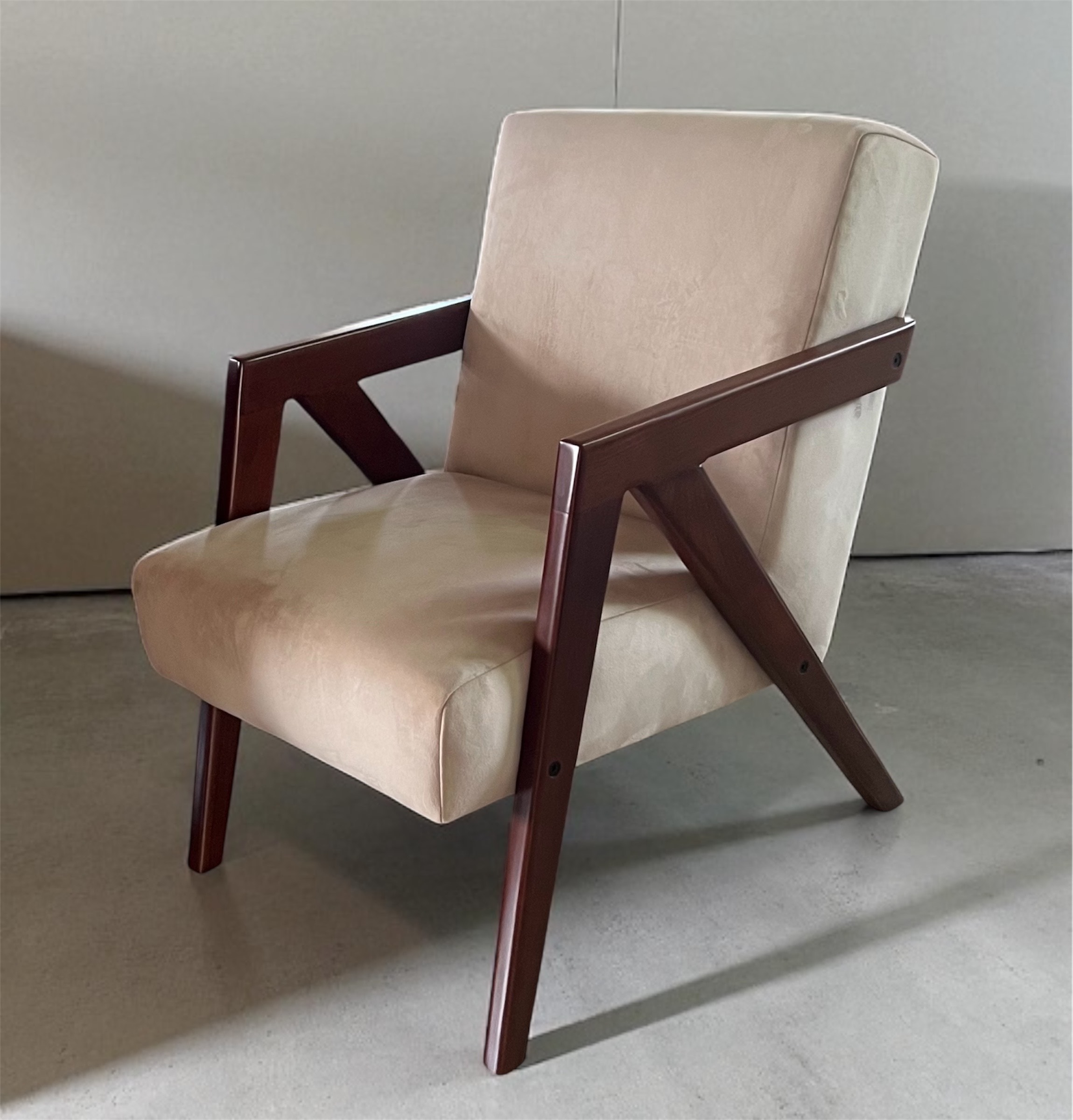 Fotelja jednostavnog dizajna sa srednje visokim naslonom, idealna za moderan enterijer. Bez dodatnih jastuka, pruža čistu liniju i elegantan izgled.