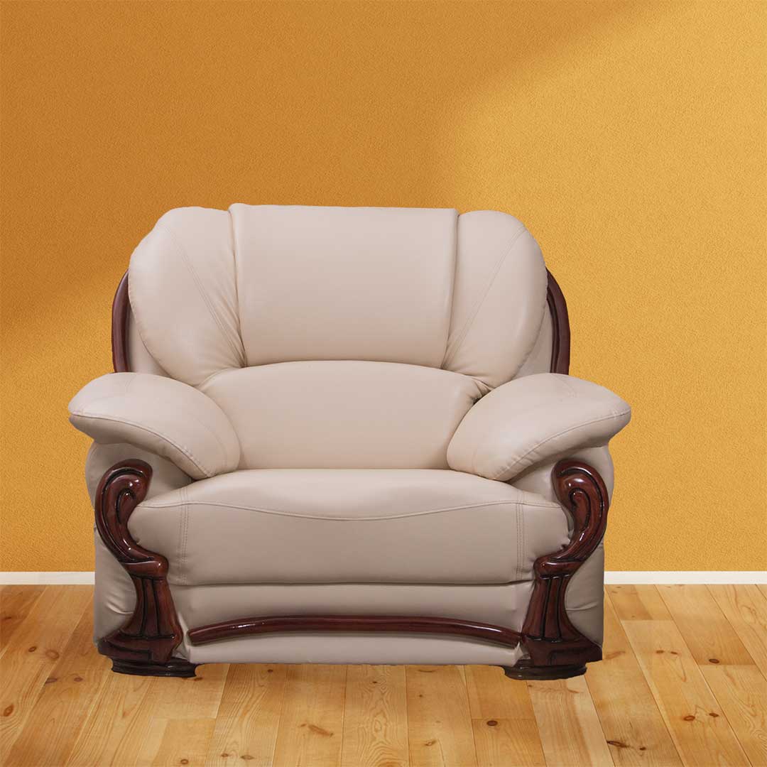 Fotelja Lux ulepšaće Vaš dnevni boravak. Veoma modernog dizajna , jednostavnih linija i sa izraženim dekorativnim aplikacijama od drveta . Sedište je od sunđera gustine 28kg/m3 , dok je konstrukcija od bukovog drveta . Odaberite idealnu boju kože iz ponuđene palete boja .