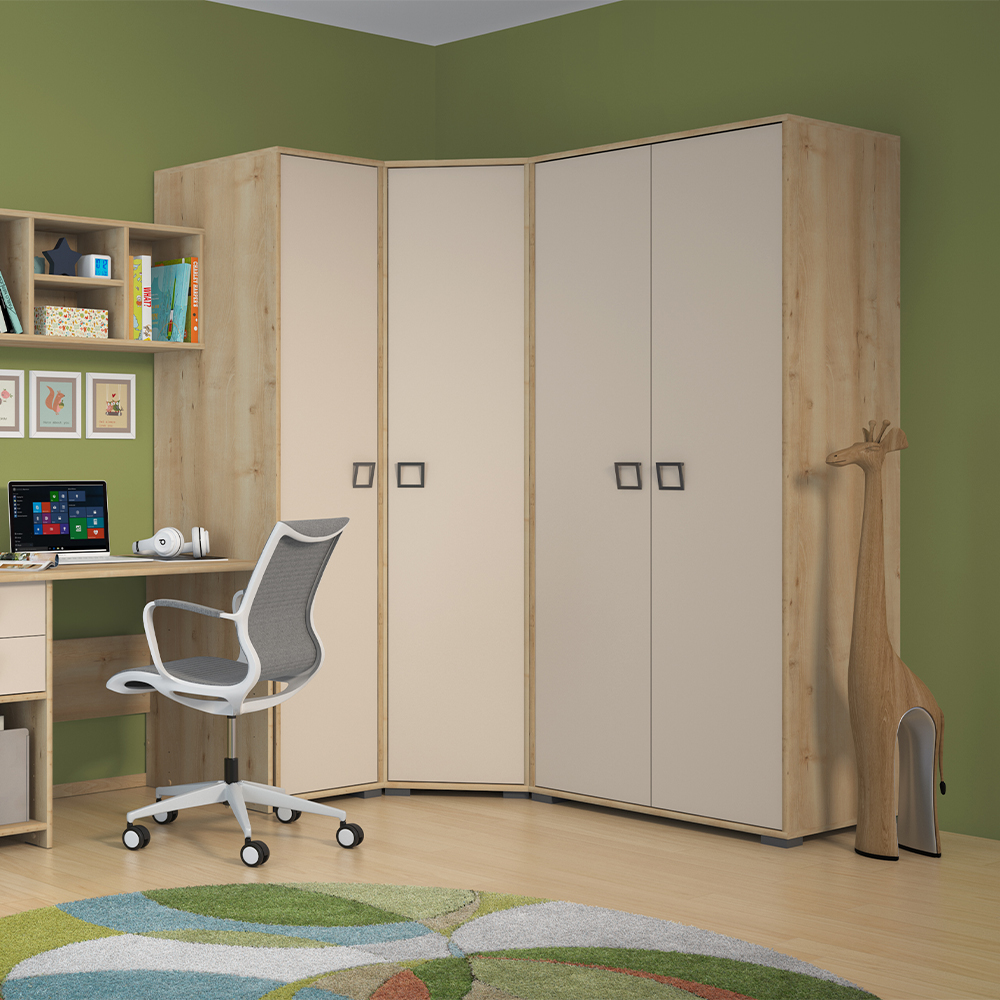 Garderober za dečiju sobu, iz kolekcije KIKI, sa dva krila. Element koji se svojim kvalitetom i funkcionalnošću u potpunosti izdvaja od ostalih na tržištu