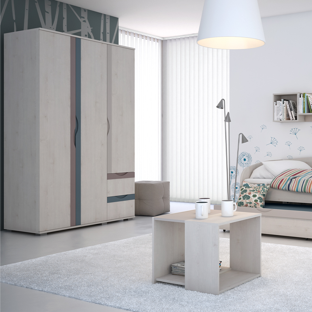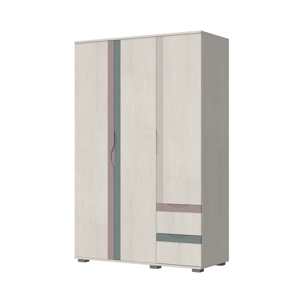 Garderober za dečiju sobu, iz kolekcije JOY, sa tri krila i dve fioke sa dekorativnim ručicama od medijapana veselih boja