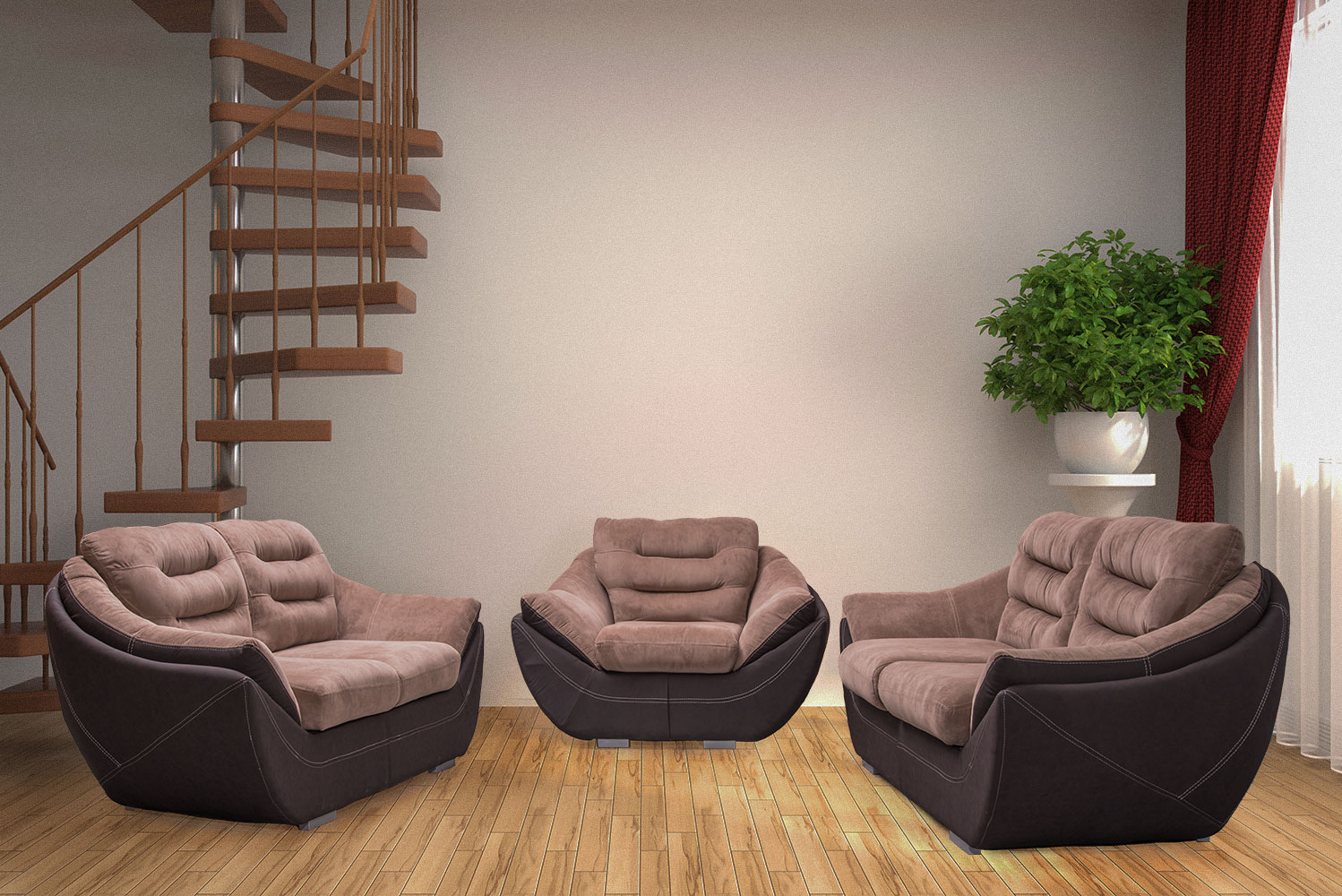 Kako i samo ime ove garniture kaže , model koji nosi avangardnost , snagu i eleganciju . Zanimljivog dizajna i jednostavnih linija pravo je osveženje među standardnim modelima iz asortimana . Nasloni su od silikonskog punjenja , što je čini još udobnijom . Sedišta su od sunđera gustine 28kg/m3 , a konstrukcija od bukovog drveta .