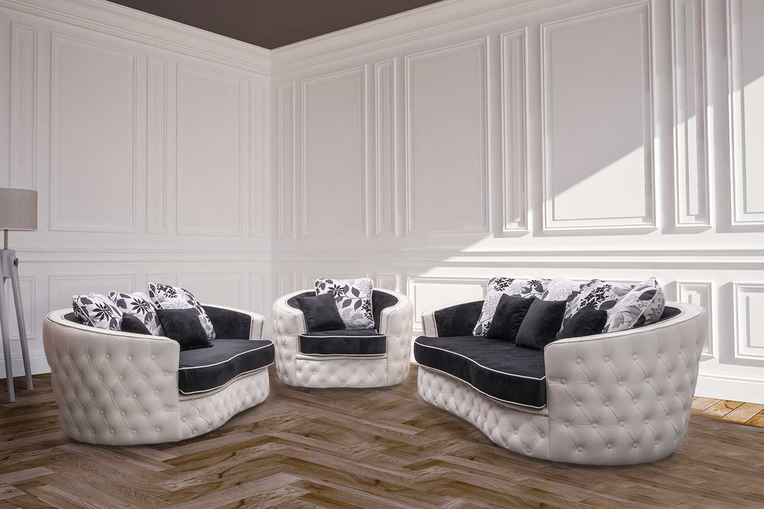 Egzotičnog izgleda kao i Florida , ova garnitura pleni svojim neobičnim dizajnom . Precizno postavljeni dugmići , ukrasne nitne i kružni oblik ovog modela čine ga jedinstvenim . Garnitura Florida pravi je izbor za nešto veće prostorije .Sedišta garniture su od sunđera gustine 28kg / m3 , a konstrukcija garniture je od bukovog drveta.