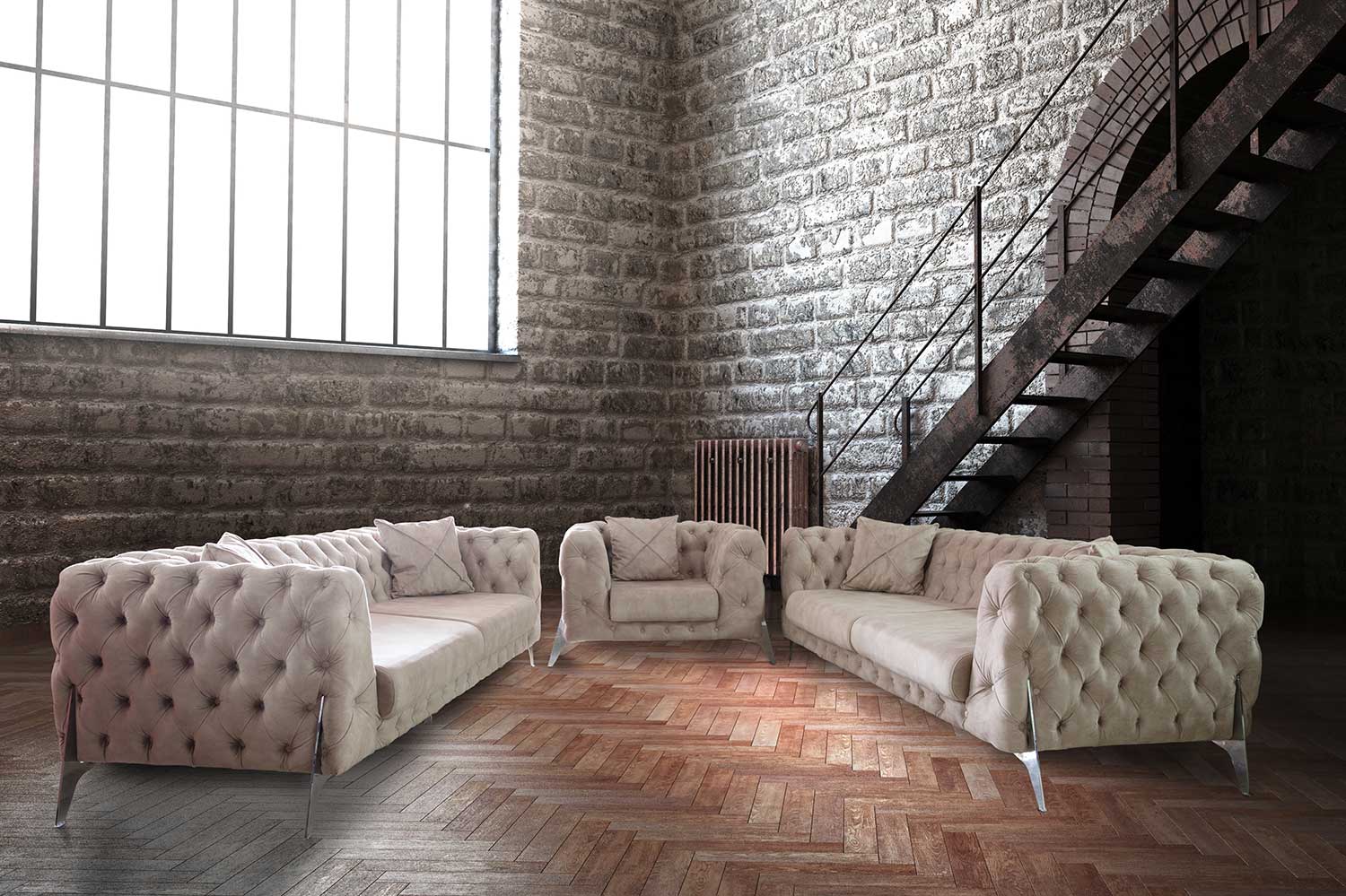 Moderna linija , inox noge koje su trenutno najveći hit na tržištu nameštaja , perfektna izrada čine ovu garnituru posebnom . Kralj među modelima , ova garnitura će Vaš prostor učiniti moćnim , modernim i elegantnim . Sedišta su od sunđera gustine 28kg/m3 . Konstrukcija garniture je od drveta. Garnitura nema opciju latofleks mehanizma za spavanje.