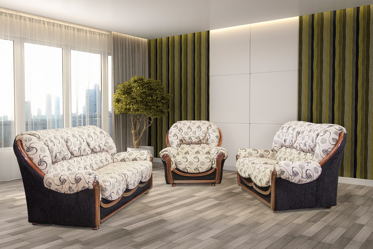 Klasičan model garniture , sa drvenim aplikacijama koje mogu biti u različitim bojama . Ovaj model se odlikuje jednostavnim dizajnom i pogodan je kako za veće tako i za manje prostore. Sedišta su od sunđera gustine 28kg/m3 , dok je konstrukcija garniture od bukovog drveta .