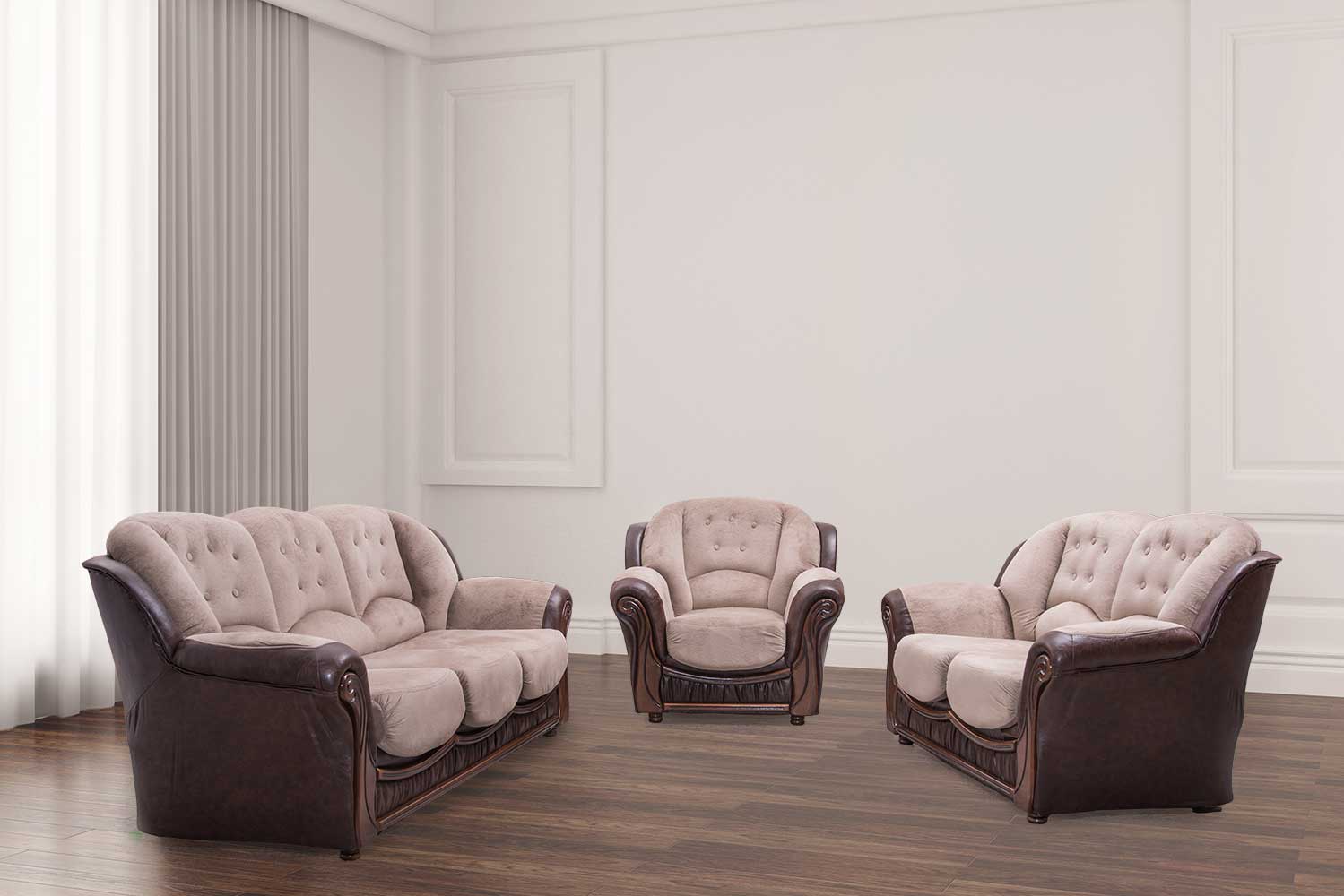 Model garniture koji nikada ne izlazi iz mode , veoma udobna , jednostavnog dizajna , sa izraženim aplikacijama od drveta . Godinama unazad je među klasičnim modelima favorit među našim kupcima . Sedišta su od sunđera gustine 28kg/m3 , dok je konstrukcija od bukovog drveta .