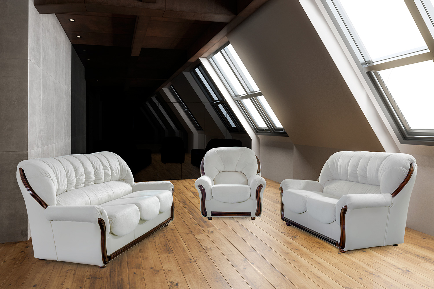 Klasičan model garniture , sa drvenim aplikacijama koje mogu biti u različitim bojama . Ovaj model se odlikuje jednostavnim dizajnom i pogodan je kako za veće tako i za manje prostore. Sedišta su od sunđera gustine 28kg/m3 , dok je konstrukcija garniture od bukovog drveta .