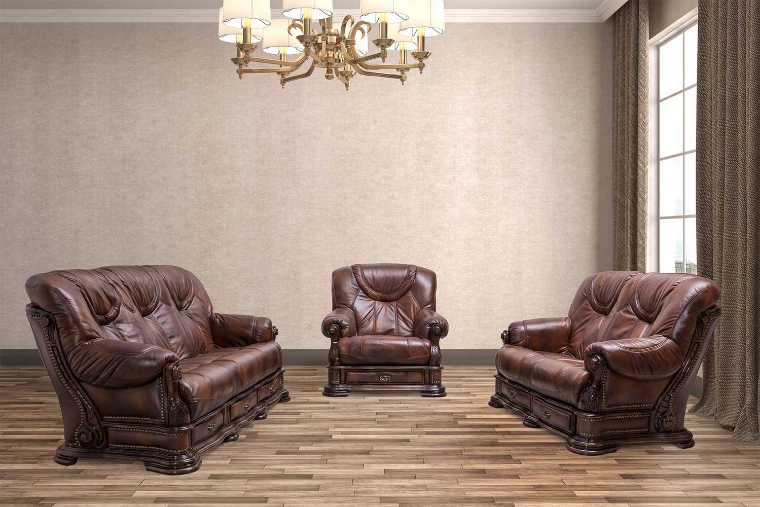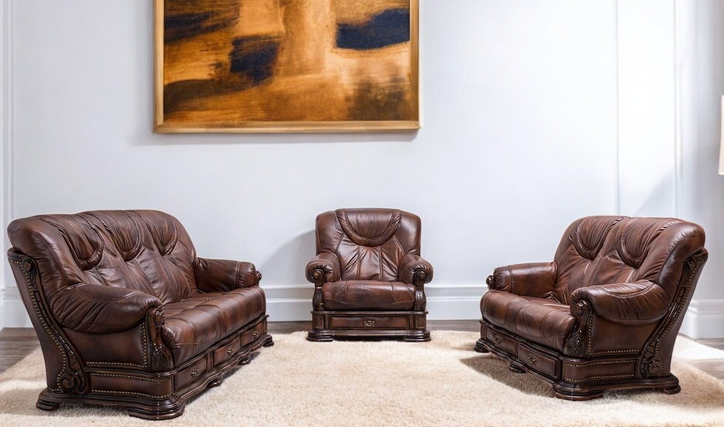Model garniture koja odiše snagom.Veoma moćnih linija , sapecifična po obradi drvenih aplikacija koje u i sastavni deo ovog modela , svakako će Vašu dnevnu sobu učiniti posebnom . Lako se uklapa kako u mderan dizajn tako i u rustično dizajnirane prostore. Garniture Grenada nema opciju latofleks mehanizma za razvlačenje. Izrađen u koži prvog kvaliteta predstavlja visoku klasu među modelima iz proizvodnje fabrike nameštaja HRAST.