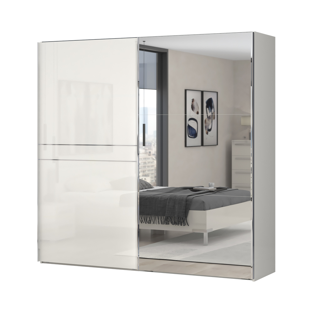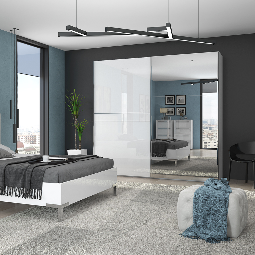 Dvokrilni klizni plakar sa ogledalom na jednom krilu dizajnirane geometrijske forme iz kolekcije nameštaja PIANO.