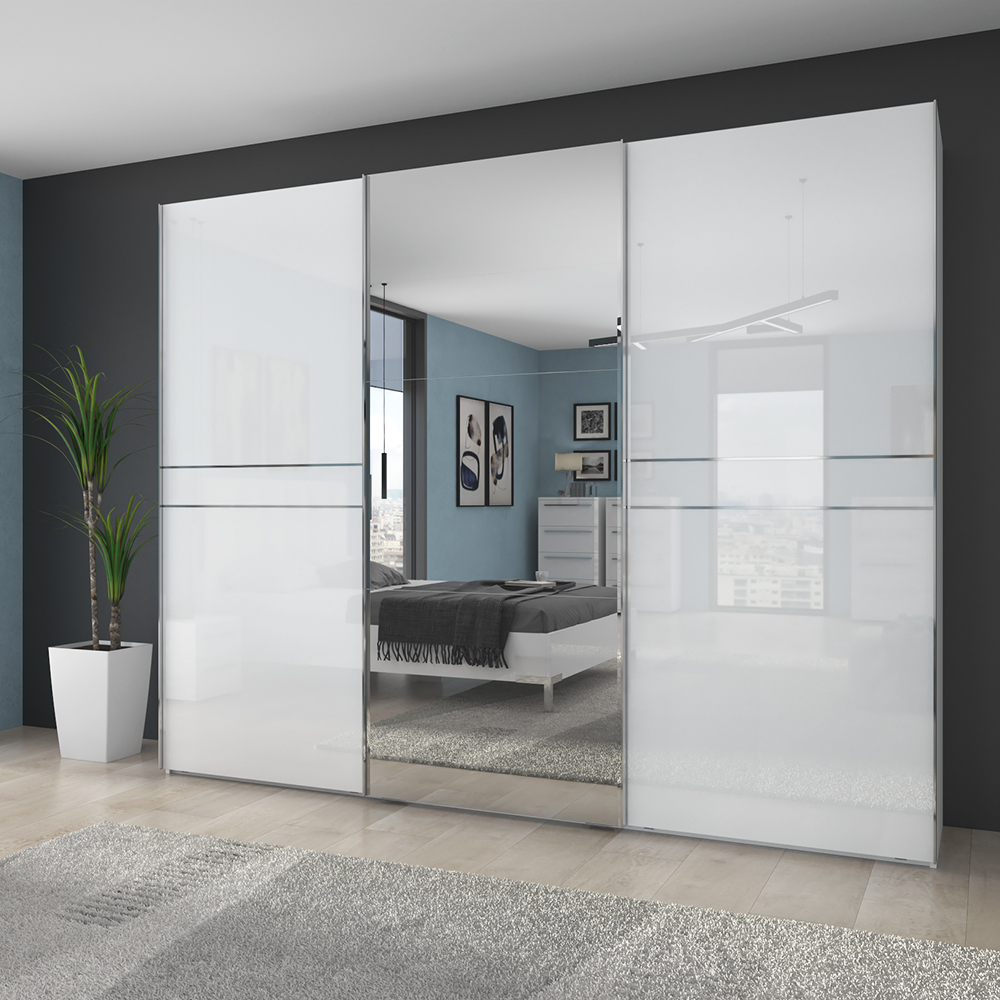 Trokrilni klizni plakar sa ogledalom na jednom krilu, dizajnirane geometrijske forme iz kolekcije nameštaja PIANO.