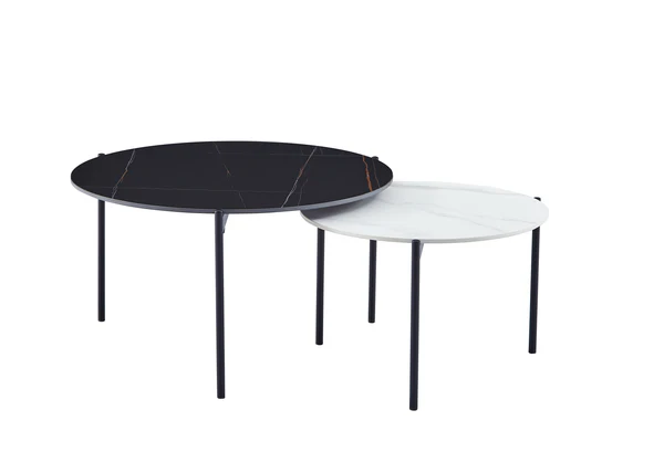 Moderan set klub stolova koji unosi eleganciju i praktičnost u svaki dnevni boravak. Set se sastoji od dva stola različitih dimenzija, što omogućava fleksibilno raspoređivanje – zajedno kao celina ili odvojeno, prema potrebi prostora.