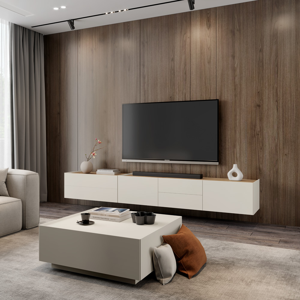 Klub sto za dnevnu sobu iz kolekcije SKY45 sa dve fioke dizajnerski iskorak u oblikovanju i načinu spajanja bočnih strana i frontova pod uglom od 45 stepeni