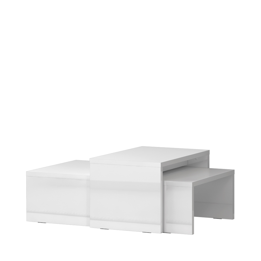 Set klub stolova kompletno lakiranih u visokom sjaju najnovije tehnologije. Oba elementa lakirana su UV lakom u visokom sjaju, u toploj bež ili kristalno beloj boji.