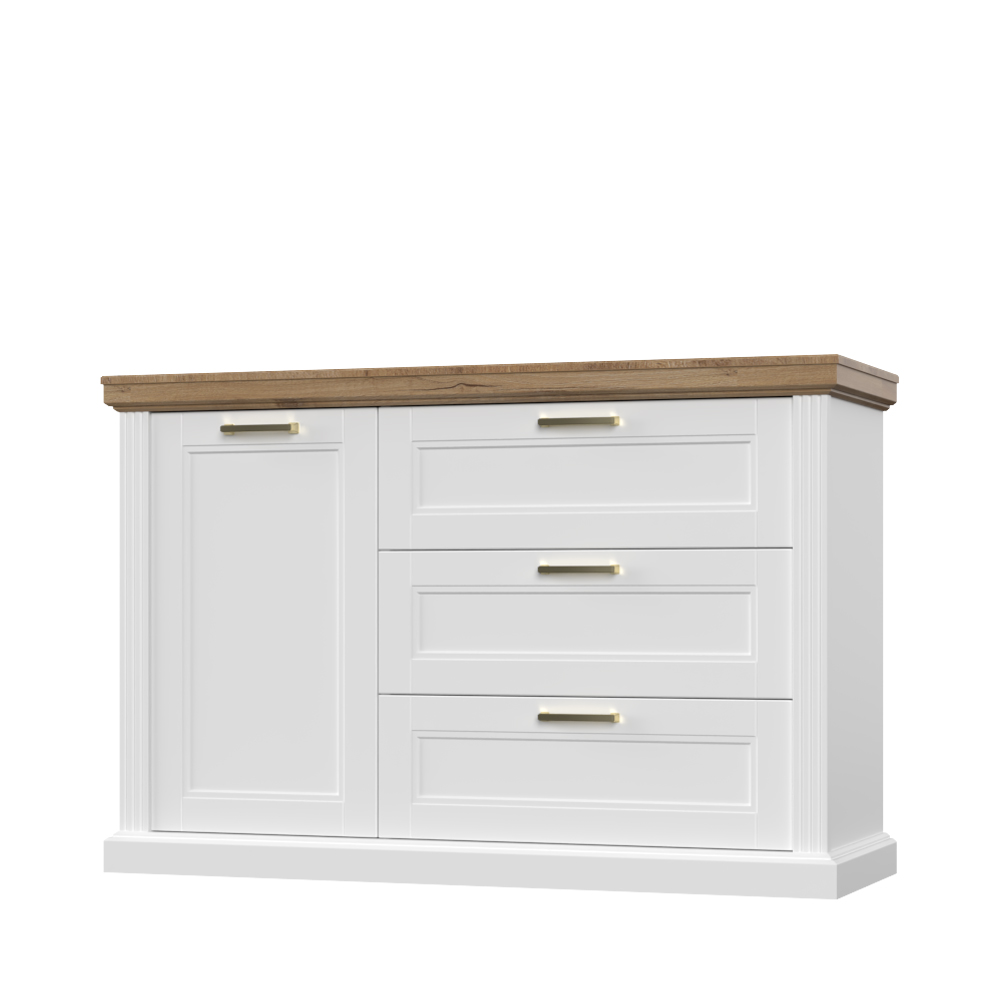Moderna komoda iz kolekcije TARA sa jednim krilom i tri fioke.