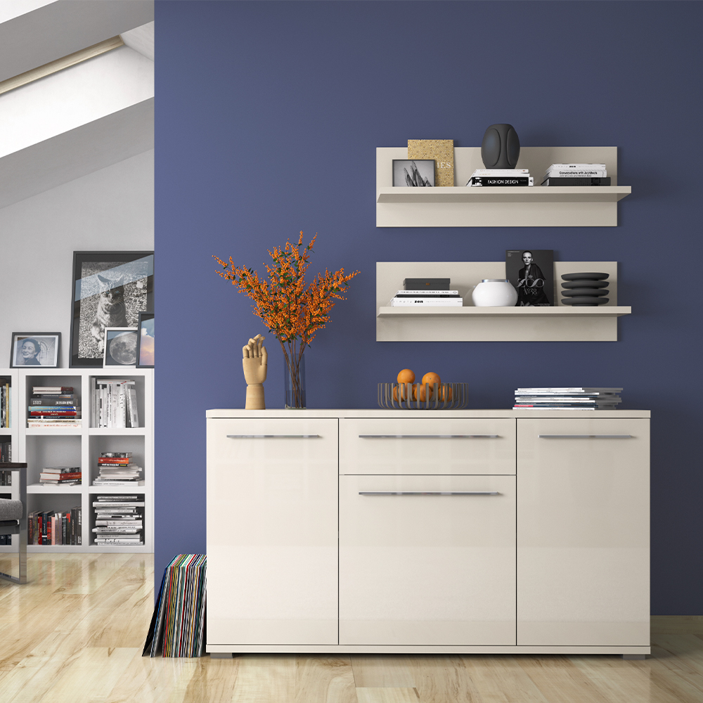 Funkcionalna komoda iz kolekcije nameštaja PIANO sa tri puna krila I jednom fiokom, dizajnirane geometrijske forme.