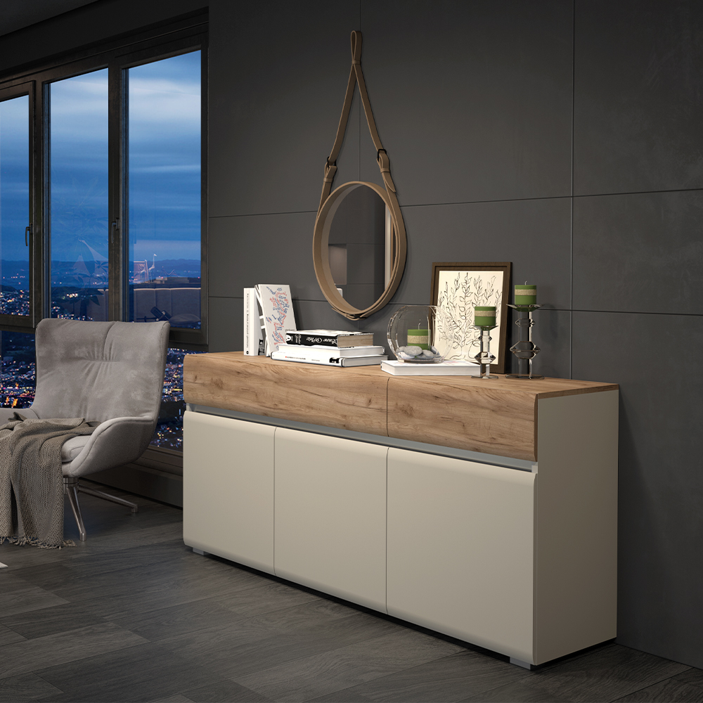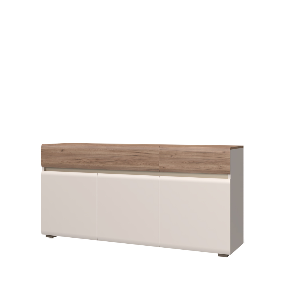 Komoda za spavaću sobu iz luksuzne kolekcije INVICTUS sa tri krila i dve fioke, skladne i meke forme frontova. Sofisticiran komad nameštaja za vašu spavaću sobu.