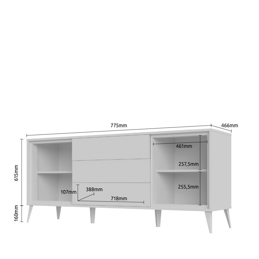 Komoda iz kolekcije VIDA, sa dva krila u kristalno beloj boji i tri fioke u drvo-dekoru Pacifik orah, dizajnirana je u stilu 60-tih godina. Ova komoda namenjena je ljubitelima nameštaja retro dizajna.