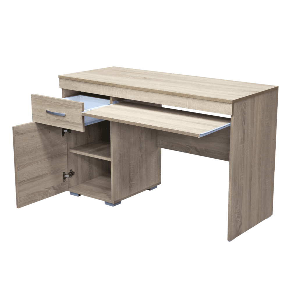 Kompjuter sto je sa policom za tastaturu koja se izvlači , fiokom i zatvorenom policom za maksimalnu iskorišćenost prostora.