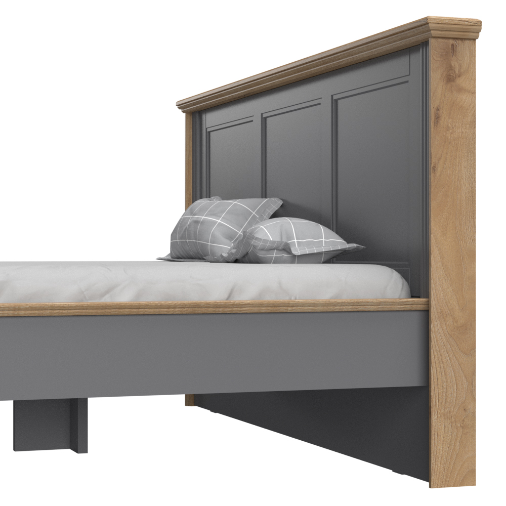- uzglavlje i uznožje su proizvedeni od rezbarenog medijapana lakiranog UV lakom sa soft mat efektom u grafit ili beloj boji, a dekorativne lajsne su od medijapana presvučene folijom u dekoru Pacifik orah
