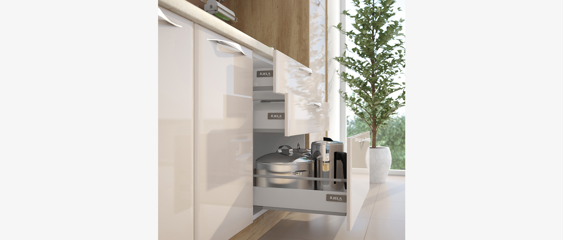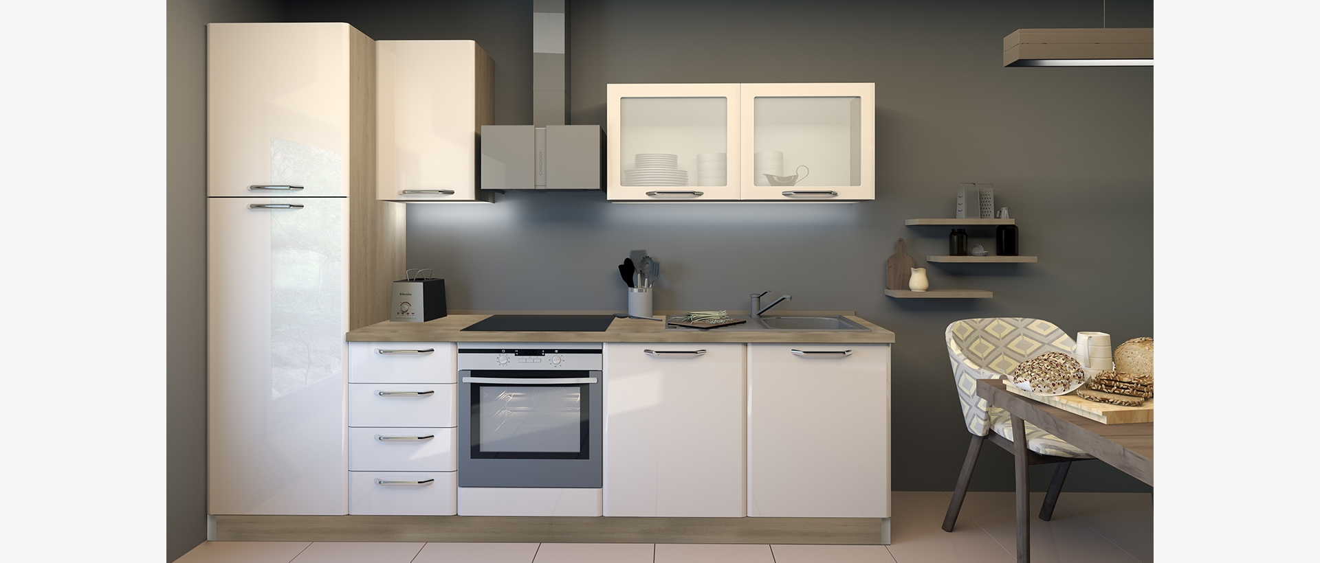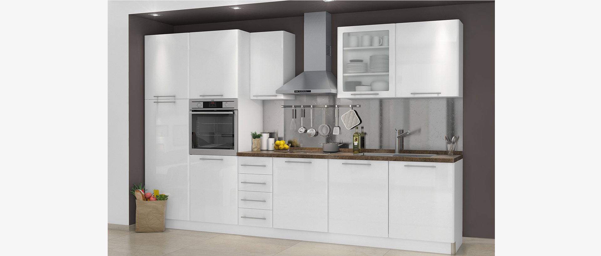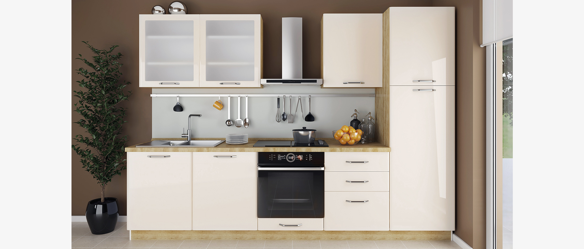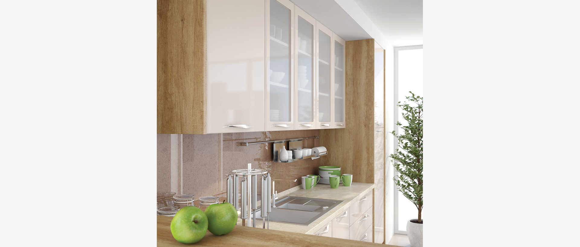 Zaobljene ivice frontova u visokom sjaju pružaju toplinu. Kombinujte jednu ili više boja frontova i ručicu po želji za unikatan izgled Vaše kuhinje.