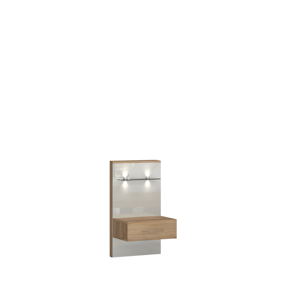 Noćni stočić za spavaću sobu, iz kolekcije GALA, modernog dizajna, sa jednom fiokom i staklenom policom.