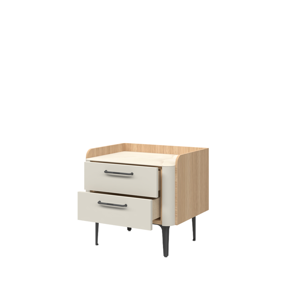 Noćni stočić za spavaću sobu, iz kolekcije AIR, sa dve fioke skladne i meke forme frontova.