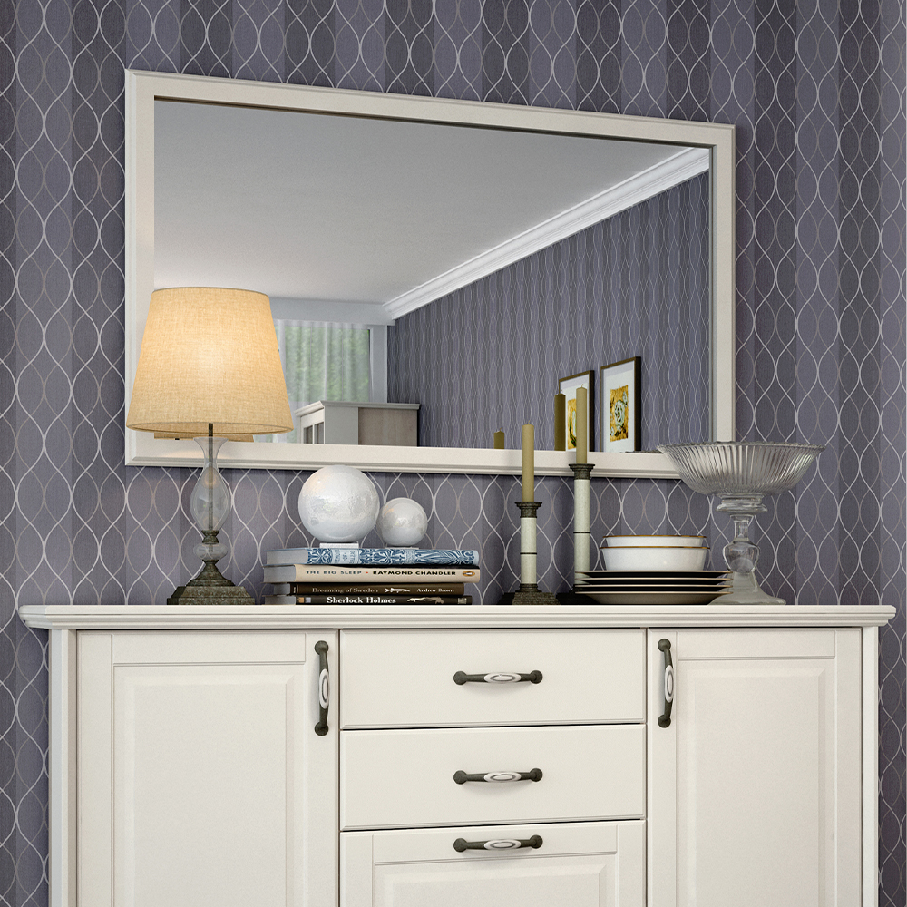 Elegantno ogledalo sa dekorativnim lajsnama lakiranim u toploj boji Slonova kost, za dnevnu sobu, iz kolekcije EVERGREEN, koje će dati rustičan pečat svakoj prostoriji vašeg doma.