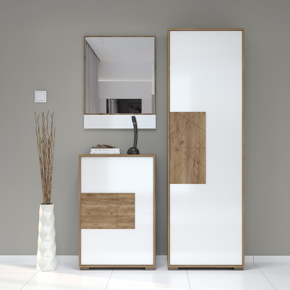 Ogledalo za predsoblje iz kolekcije STELA na podlozi od univera u dekoru Tobacco hrast sa aplikacijom u kristalno beloj boji.