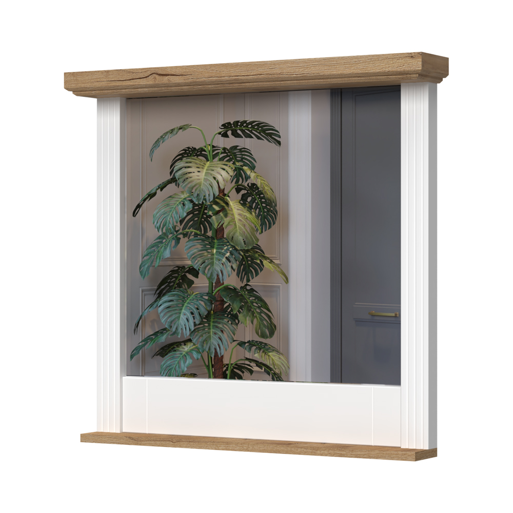 Ogledalo za predsoblje, iz kolekcije TARA, sa ramom od stilski profilisanih lajsni izrađenih od medijapana kompletno lakiranog UV lakom sa soft mat efektom u grafit boji i masivnom pokrivnom pločom u dekoru Pacifik orah .