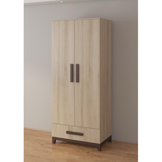 Ormar je opremljen sa 2 vrata i 1 fiokom, što omogućava funkcionalnu organizaciju garderobe