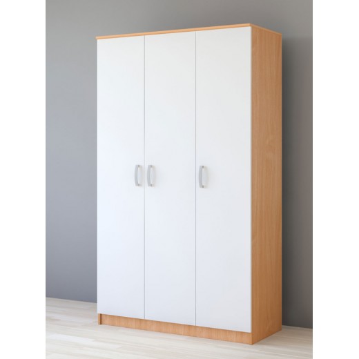 Ormar jednostavnog i modernog dizajna sa 3 vrata, namenjen za praktično i uredno odlaganje garderobe. Kombinacija belih frontova i drvenih bočnih stranica daje mu neutralan izgled koji se lako uklapa u različite prostore.