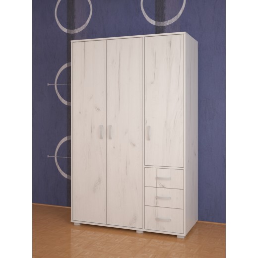 Ormar sa 3 vrata i 3 fioke predstavlja idealno rešenje za funkcionalno i uredno odlaganje garderobe. Savremen dizajn u svetloj boji sa diskretnom teksturom lako se uklapa u različite stilove enterijera  od modernog do klasičnog.