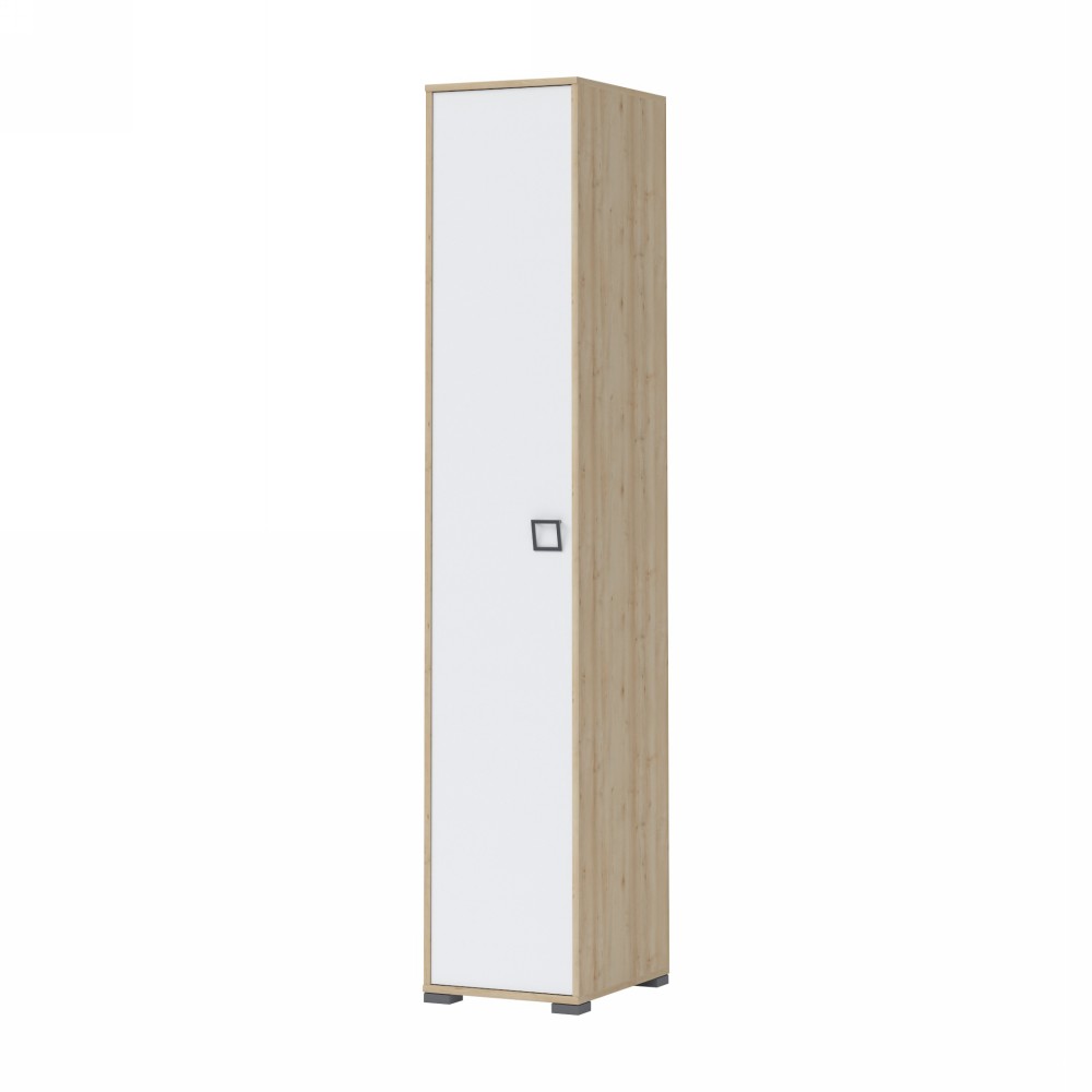 Plakar za dečiju sobu iz kolekcije KIKI, sa jednim krilom, a postoji mogućnost izbora otvaranja krila na levu ili desnu stranu. Element koji se svojim kvalitetom i funkcionalnošću u potpunosti izdvaja od ostalih na tržištu