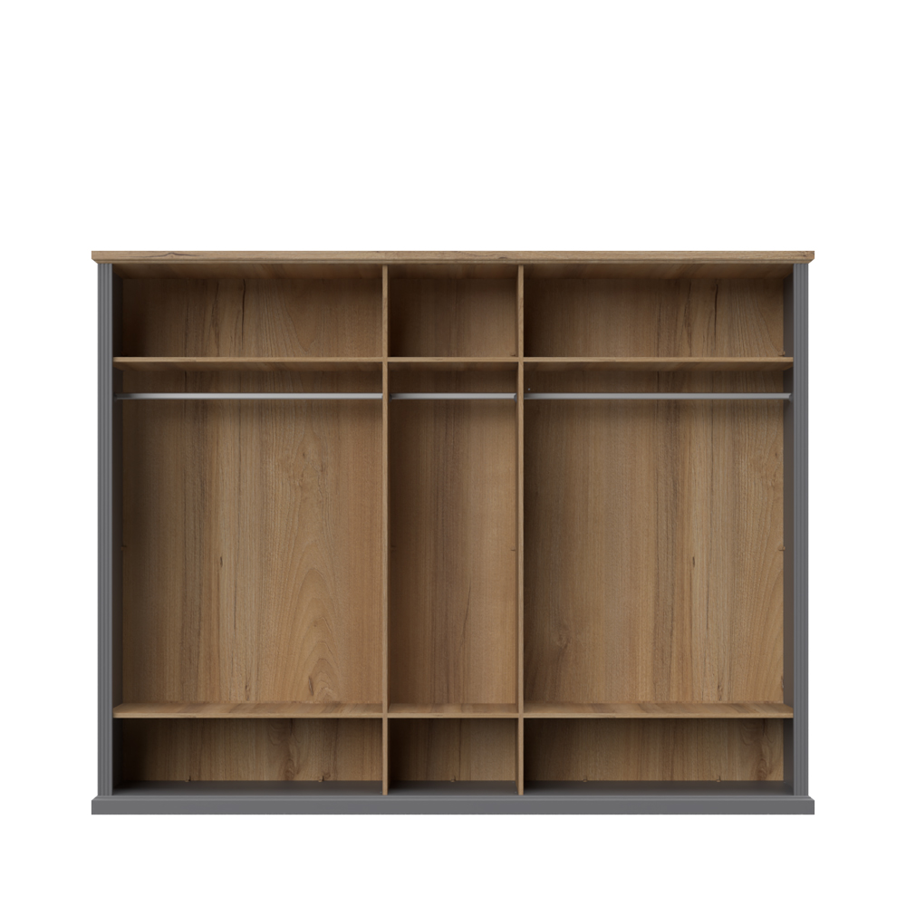 - plakar sadrži šest fahova, kao i tri garderobne šipke, što ga čini izuzetno funkcionalnim