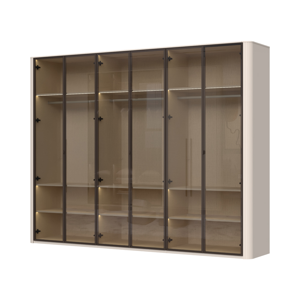Funkcionalni plakar sa staklenim frontovima sa aluminijumskim ramom u dekoru Midnight Copper.