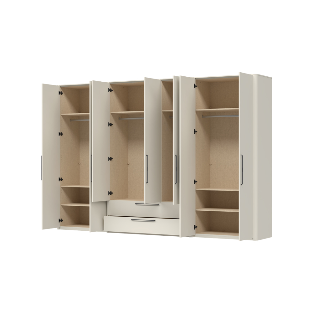Plakar za spavaću sobu iz kolekcije AIR sa sedam krila i dve fioke skladne i meke forme.