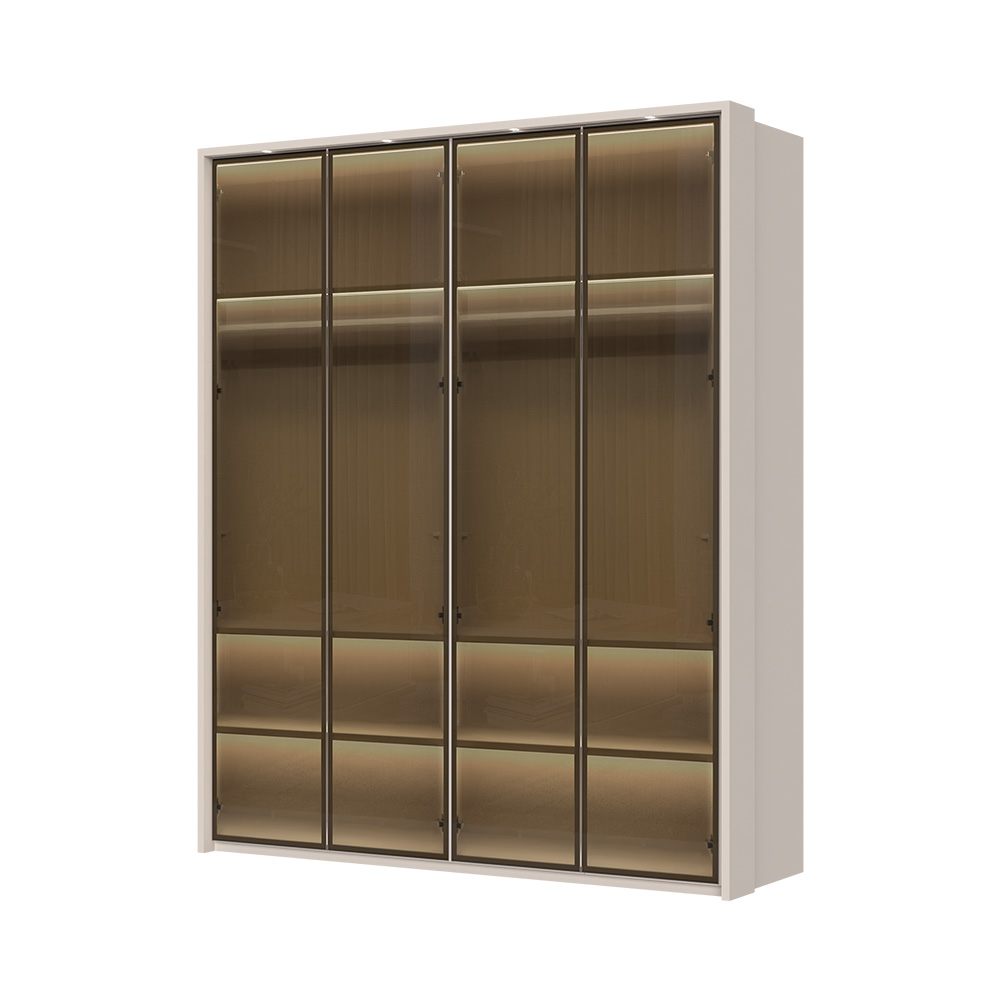 Četvorokrilni plakar sa dekorativnim lajsnama sa rasvetom i staklenim frontovima iz kolekcije OPERA.