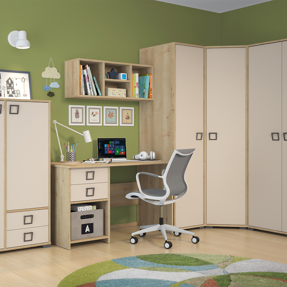 Kompjuter sto sa dve fioke, iz asortimana dečijih soba KIKI. Fioke mogu biti sa leve ili desne strane u zavisnosti od vaših potreba