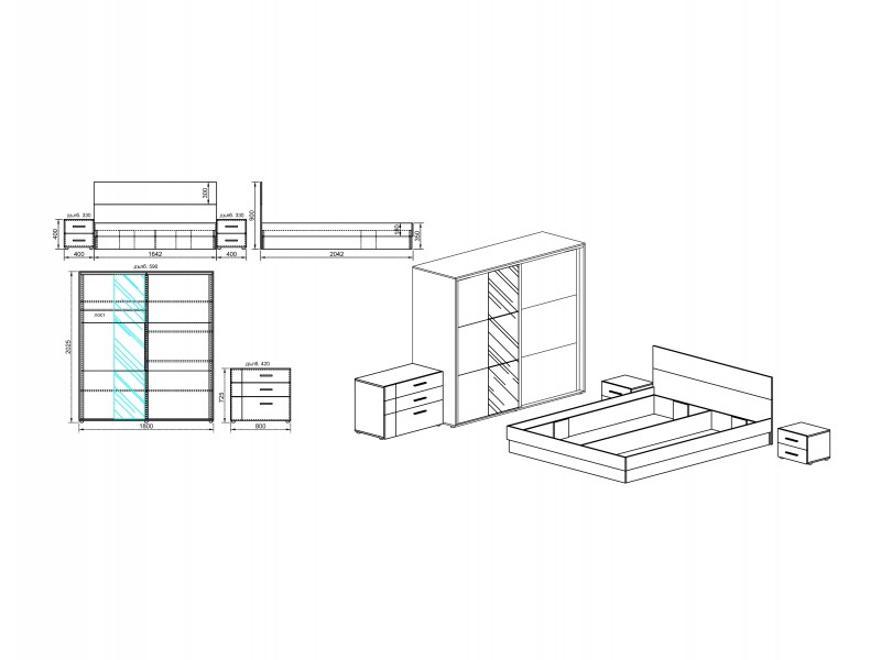 • Noćni ormarić (2 komada): 400 x 335 x 400 mm