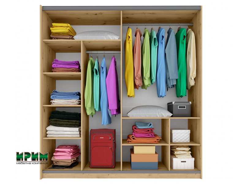 Garderober City 1037 sa kliznim vratima i dimenzijama 2000 x 590 x 2150 mm pravi je dragulj ovog seta. Sistem tihog zatvaranja obezbeđuje dugovečnost i dodaje osećaj luksuza pri svakom otvaranju. Dizajn garderobera prati prefinjenu kombinaciju hrasta Artisan i MDF kešmira, unoseći toplinu i svetlost u prostoriju. Ovaj garderober je savršen za organizaciju i skladištenje, sa dovoljno prostora za sve vaše odevne predmete i dodatke.