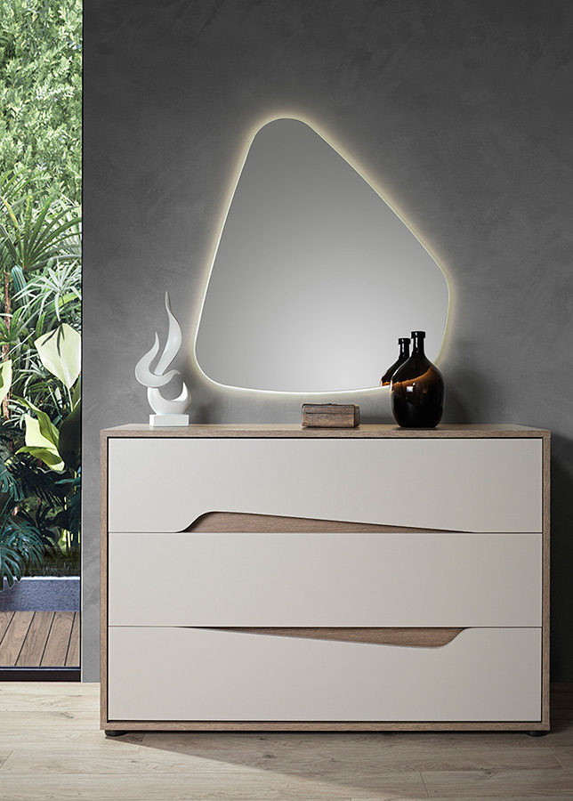 Sa garderoberom od šest vrata i dva noćna stočića, ovaj set nudi obilje prostora za odlaganje, kako bi svi vaši predmeti bili organizovani i na dohvat ruke. Komoda i ogledalo su idealni za spremanje ujutro, dok LED osvetljenje na ogledalu osigurava da izgledate najbolje u bilo koje doba dana.