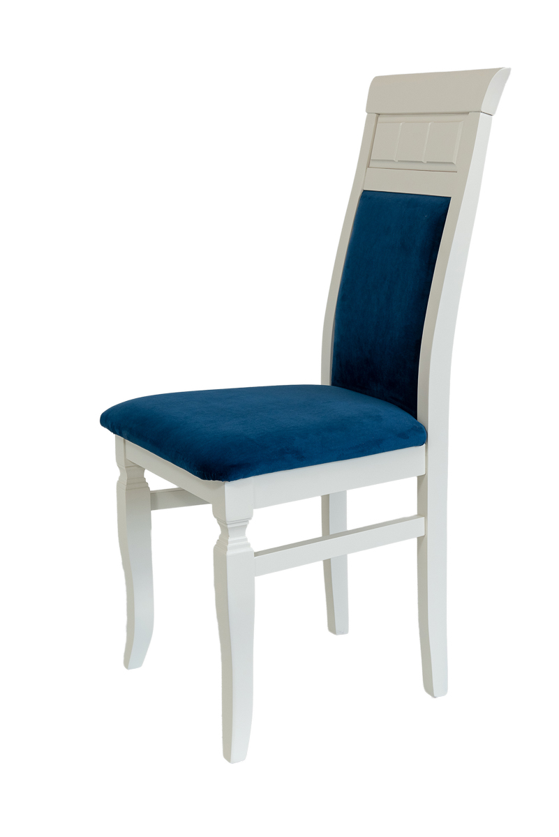 Drvetom, tekstilom i masivnim ukrasima u naslonu bez proreza ova stolica svojim izgledom podseća na prestol. Stilizovane prednje noge sa ukrasima u gornjem delu upotpunjuju ovaj izgled, a pravom kombinacijom drveta i mebla možete zaista dobiti prestol vredan jednog vladara.