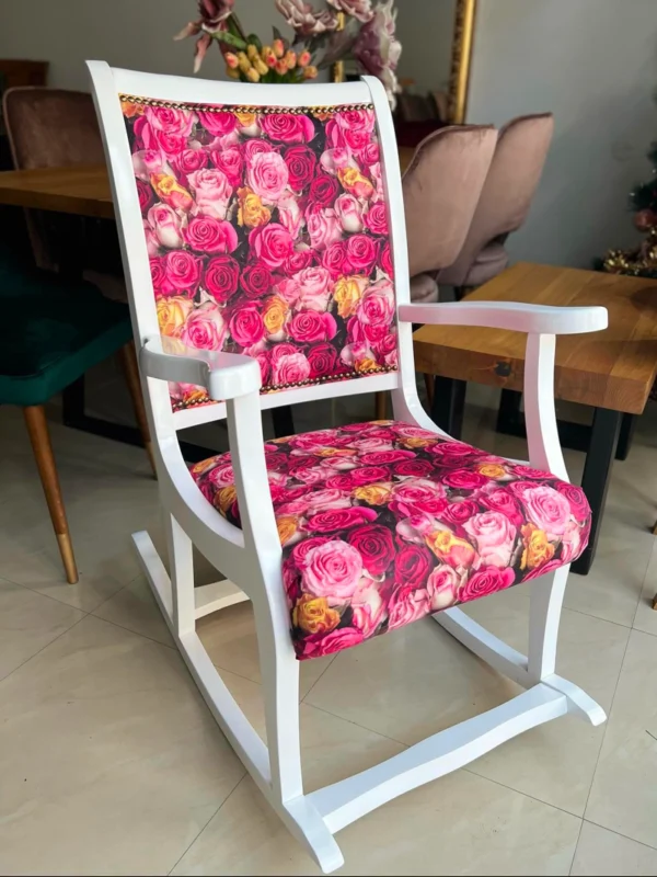 Stolica za ljuljanje koja svojim krivinama prija ne samo oku već će i, svojim punijim jastucima za sedenje i tapaciranom naslonu, prijati svakome ko želi da se odmori nakon napornog dana.