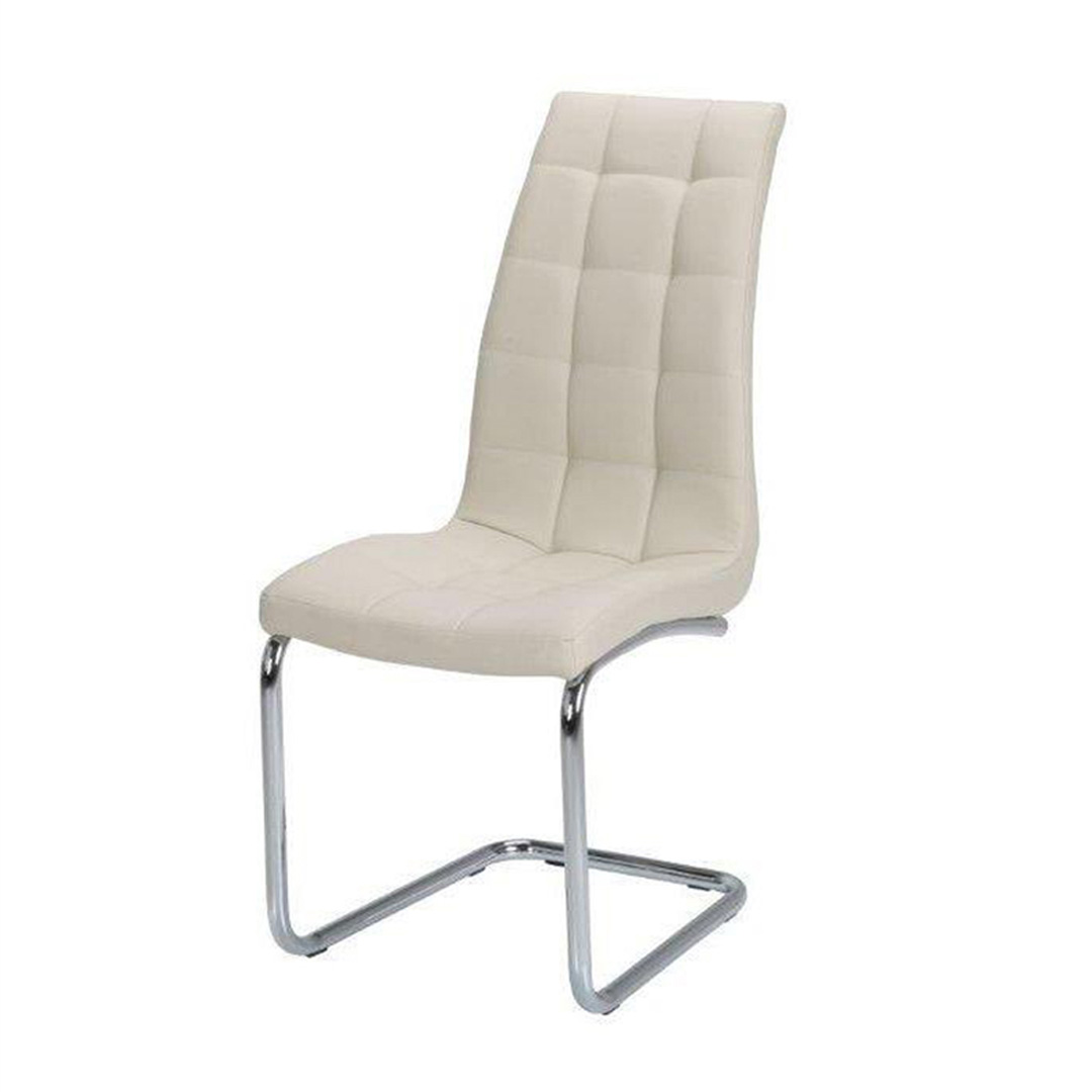 Ovaj model trpezarijske stolice ulepšaće i upotpuniti Vaš prostor i dodati mu notu elegancije . Noge ovog modela stolica su metalne , hromirane , dok su sedište i naslon tapacirani eko-kožom u krem boji .