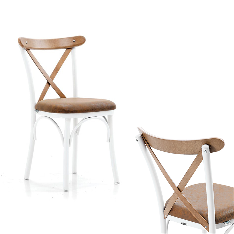 Trpezarijska stolica N-tonet Braon/Bele metalne noge