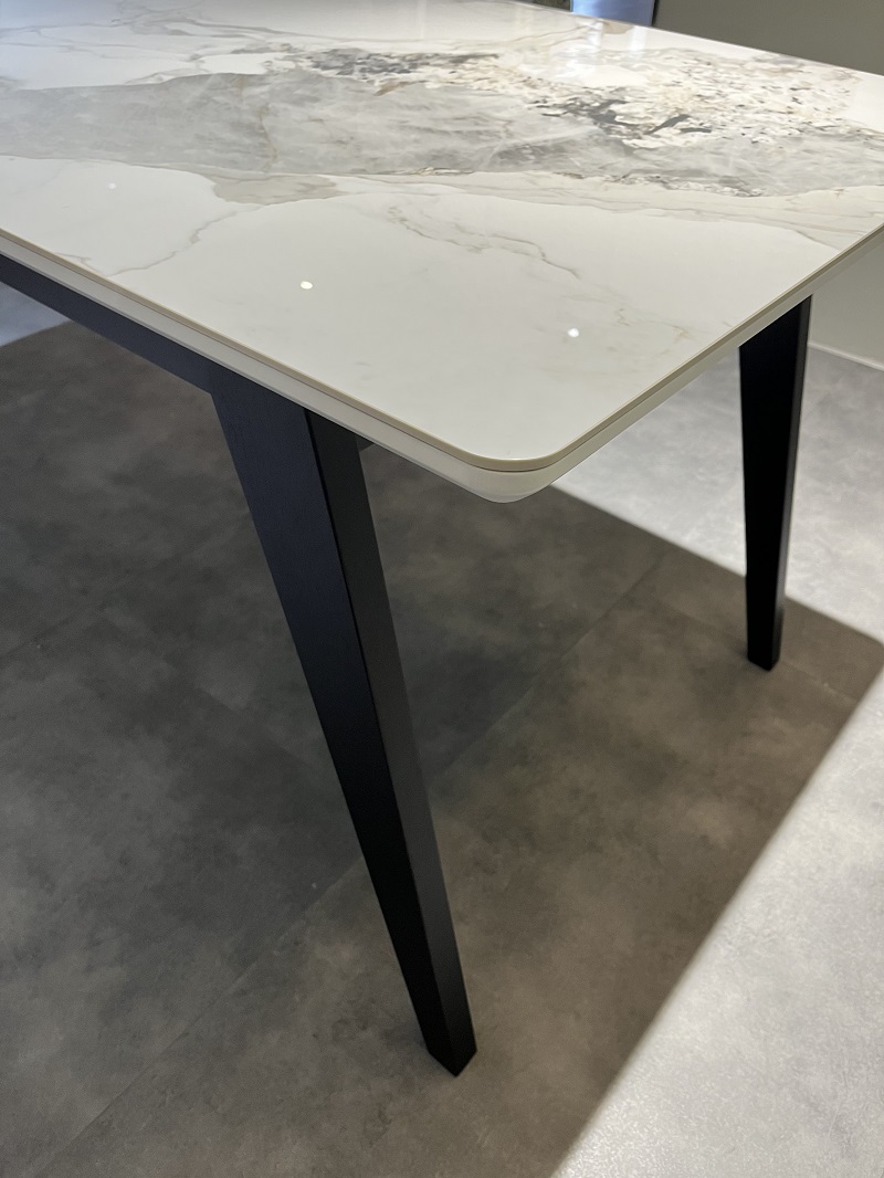 Trpezarijski sto „Chanel“ spaja kontrastnu eleganciju i savremeni šarm. Bela keramička ploča pruža besprekornu površinu, dok crne drvene noge dodaju notu sofisticiranosti. Ovaj sto je sinonim za minimalističku luksuznost, savršen za postavljanje knjiga ili dekorativnih detalja. „Chanel“ se ističe kao umetnički komad nameštaja koji unosi svetlost i stil u svaki prostor, naglašavajući pažljivo osmišljeni dizajn i funkcionalnost.